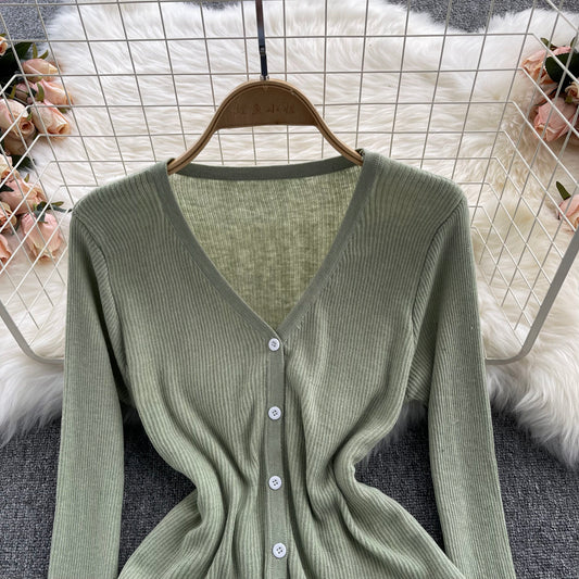 Foreign style V-neck thin sweater cardigan coat female 1614