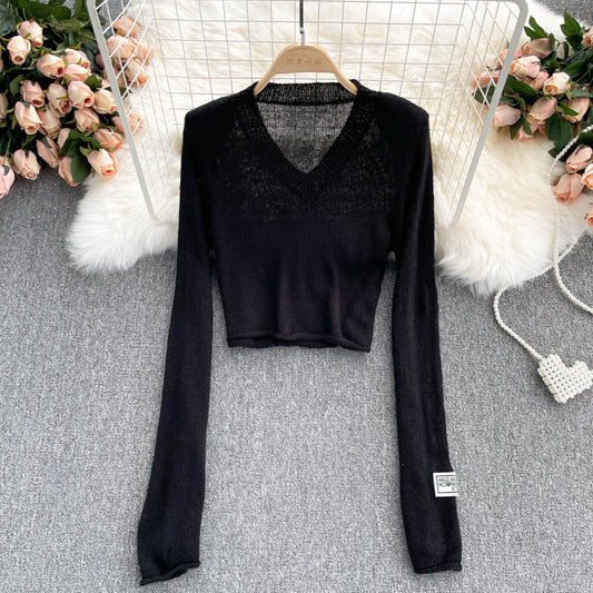 Early autumn Vintage short sweater women's design navel sweater 1612