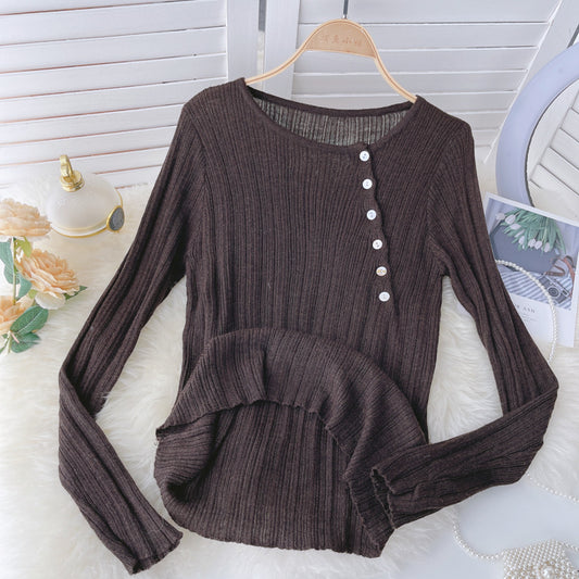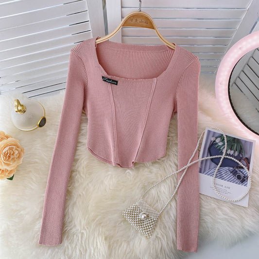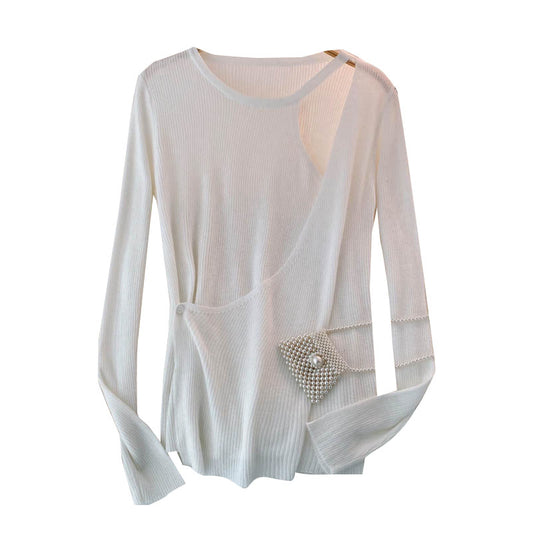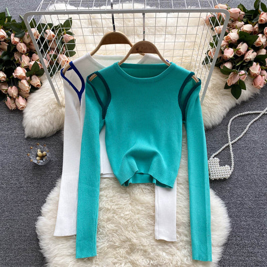 Knitted Blouse women's niche design hollow out color matching long sleeves 1588