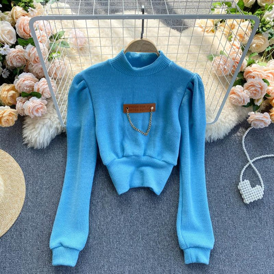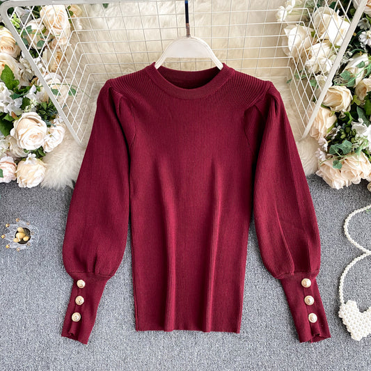 Top women's bubble sleeve inside and outside wool sweater 1574