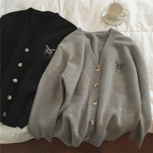Lazy, little embroidery V-neck cardigans, loose design sweaters 1432