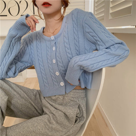 Lazy style, round neck long sleeve cardigans, loose short jacket sweater 1421
