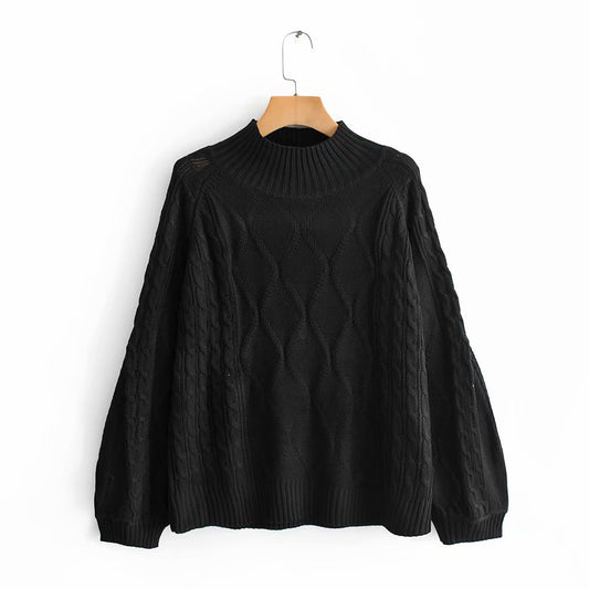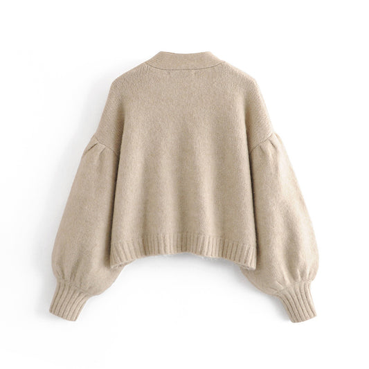 Autumn winter new fund languid loose round neck bubble sleeve knit sweater 1362