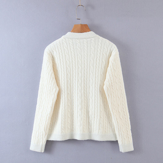 Pearl button cardigan sweater for women's dress with small fragrance and twist design 1350