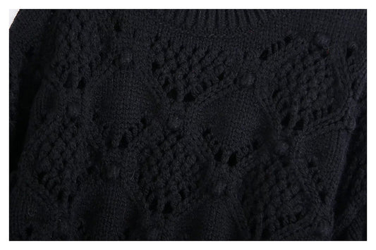 Lazy wind ball decoration eight strand hollow knit sweater 7522