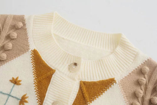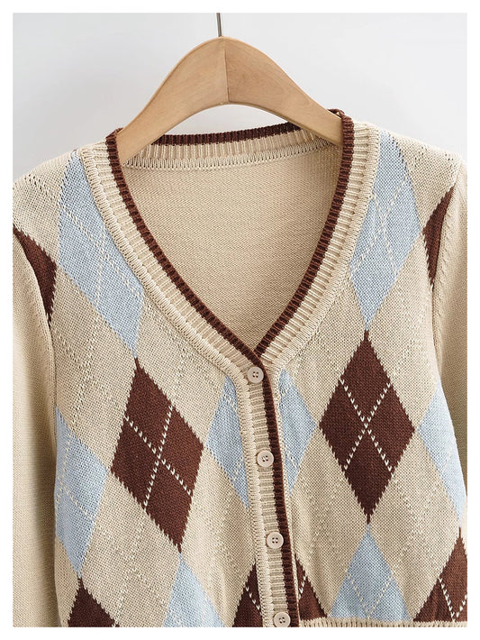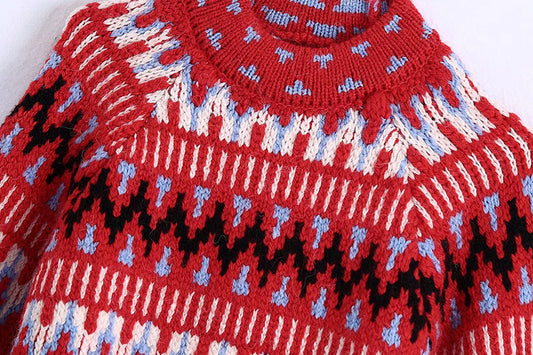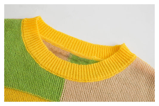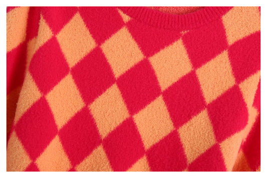 New Vintage Plaid color matching Pullover Sweater women's sweater 7523