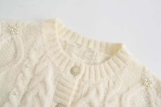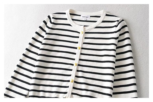 Xiaoxiangfeng knitted cardigan black and white striped gold button top 7524