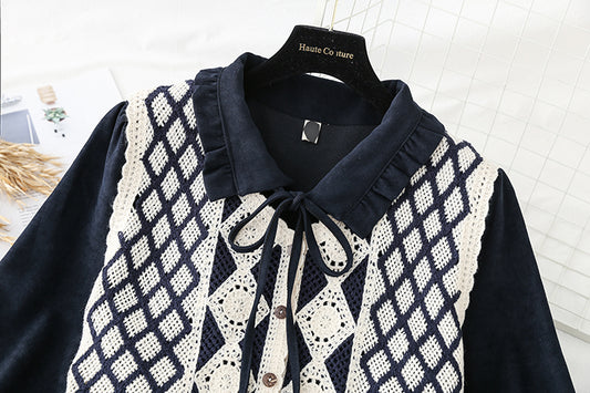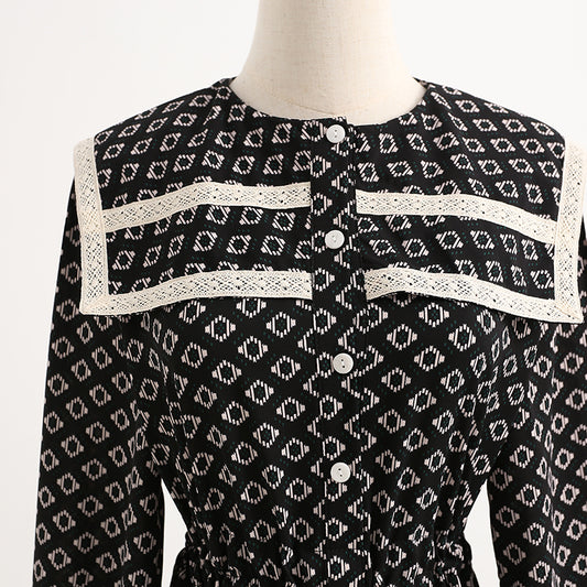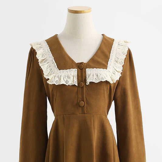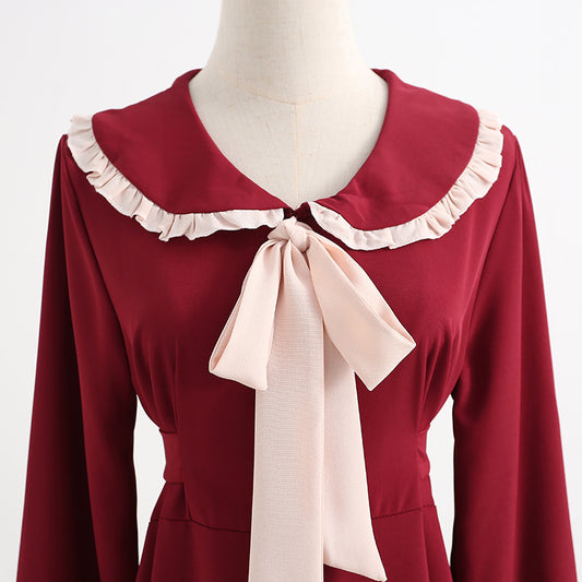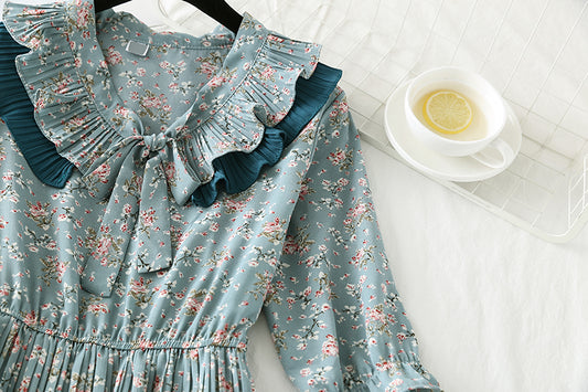 Vintage V-Neck long sleeve fairy Sen long skirt 2188