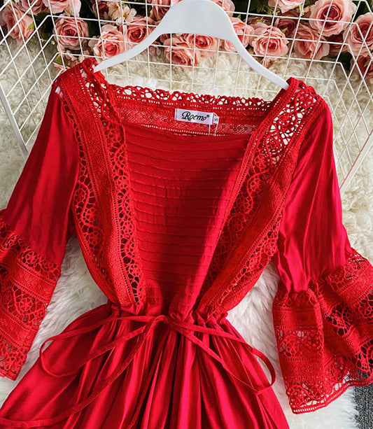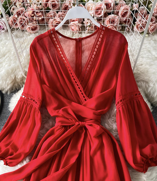 Red A line chiffon dress fashion girl dress 840