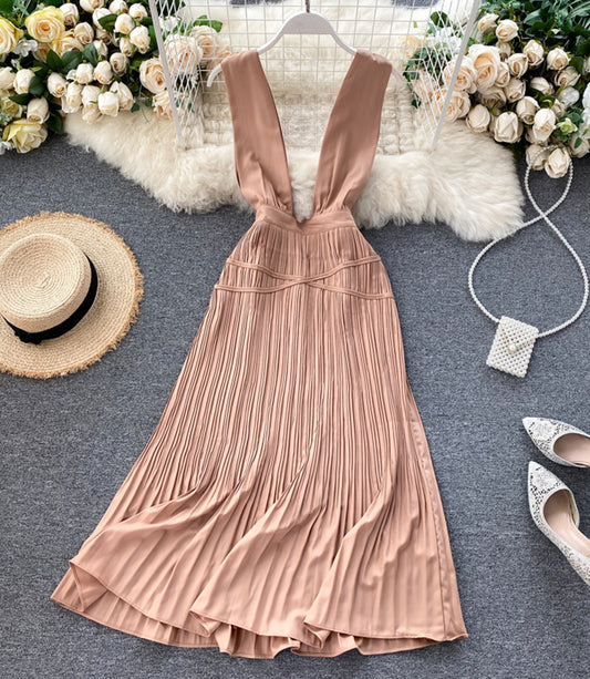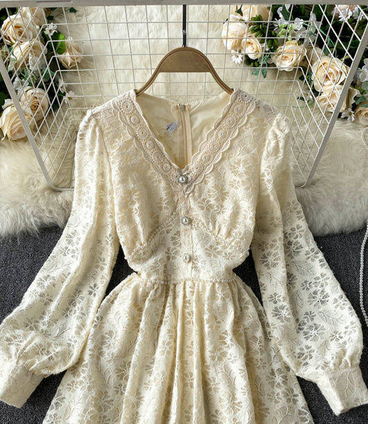 Champagne v neck lace dress fashion dress 847