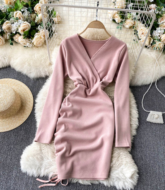 Stylish v neck long sleeve dress short dress 848