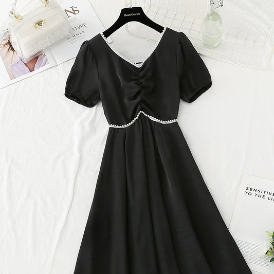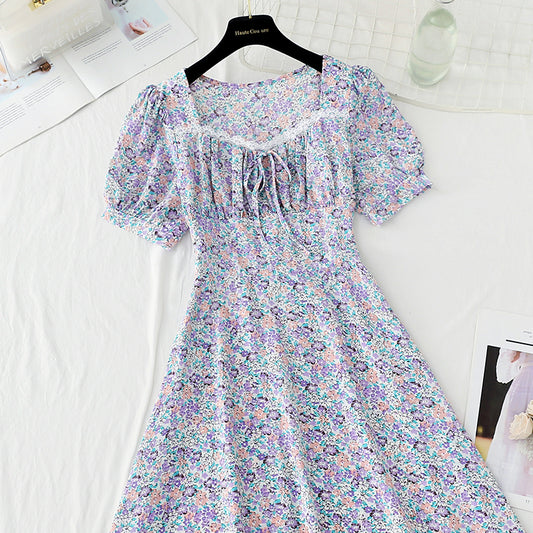 New French bubble sleeve small skirt square neck Fairy Dress 4867