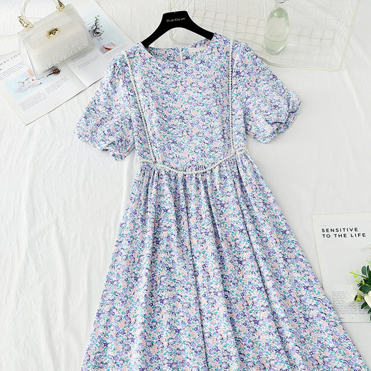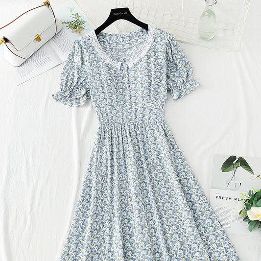 New gentle wind floral dress French Chiffon tea break skirt 4863