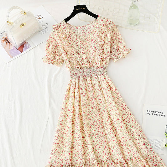 New sweet Floral Chiffon French V-neck slim fairy skirt 4872