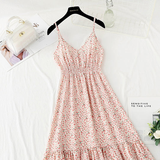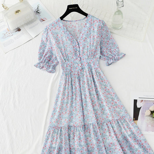 Floral Chiffon Dress gentle wind long skirt sweet V-neck 4859