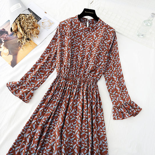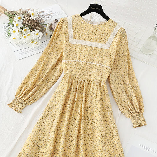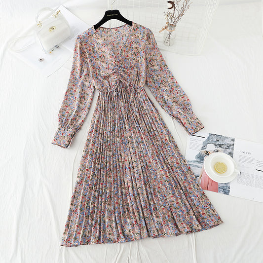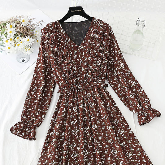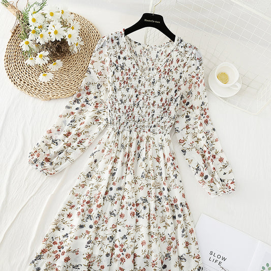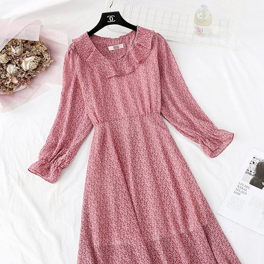 French floral dress retro minority Chiffon Dress 4833
