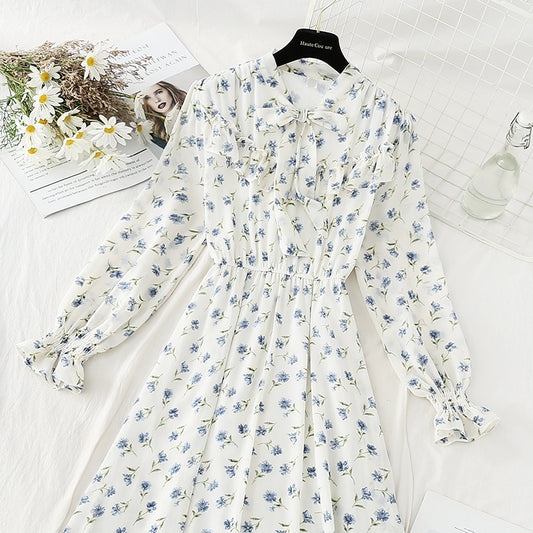 The new chiffon dress is soft and worn over the knee, showing a thin floral skirt 4819