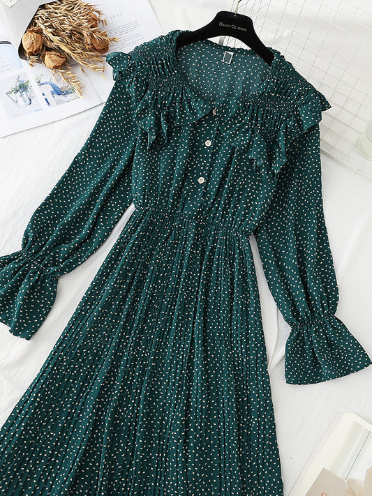New Ruffle Chiffon Dress Chiffon over knee thin pleated skirt 4803