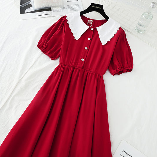 New French retro bubble sleeve chicken heart neck waist dress 4674