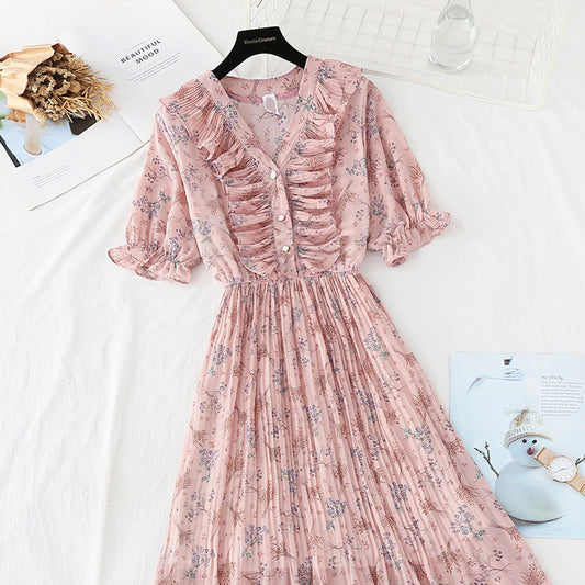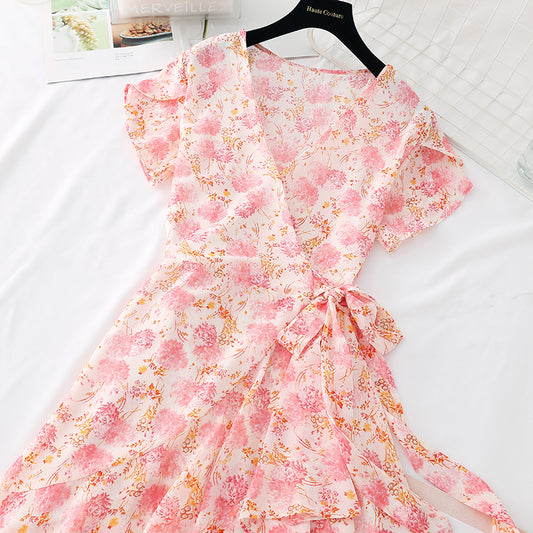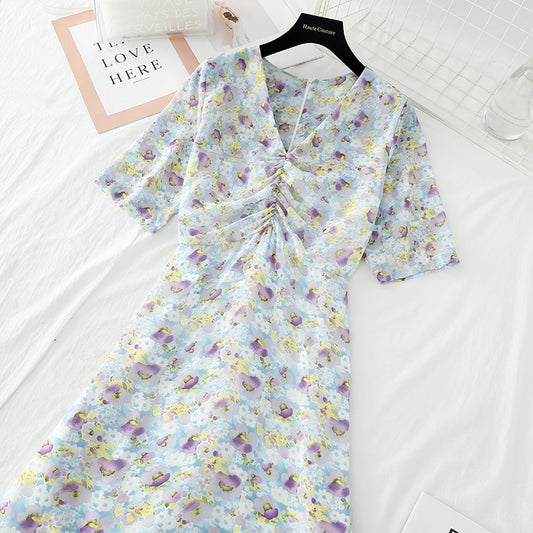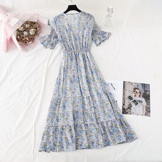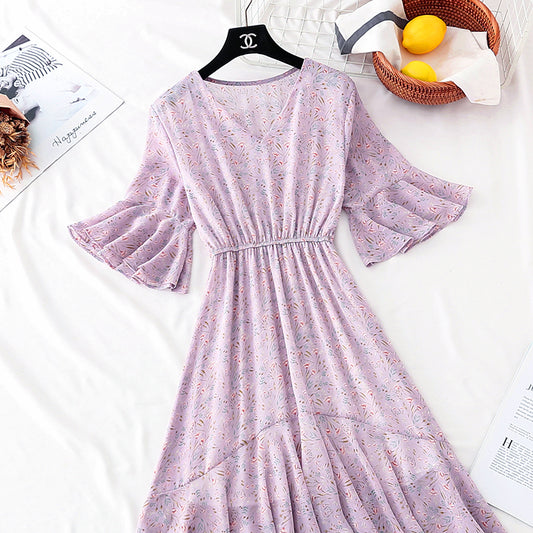 New gentle wind, slim waist, French Vintage Chiffon Skirt 4599