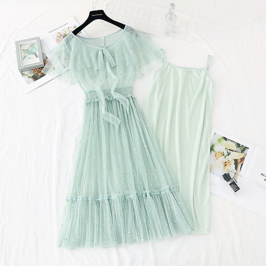 The new French retro waist shows thin temperament, fairy long skirt 4610
