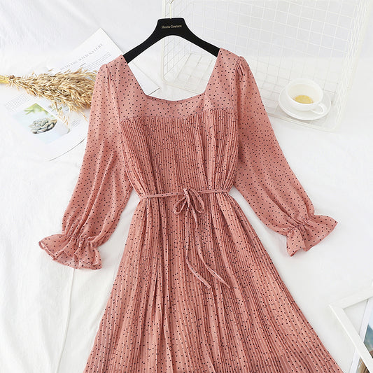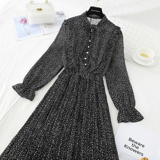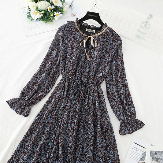 New long sleeved chiffon skirt sweet waist slim gentle wind Floral Dress 4546