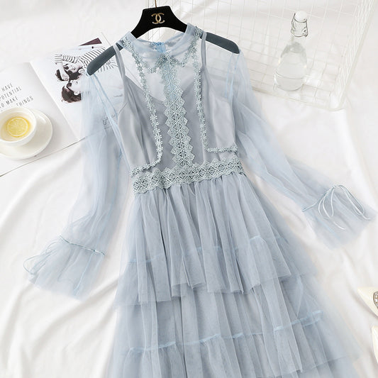 French minority bottomed shirt suspender skirt net red Hepburn skirt 4466