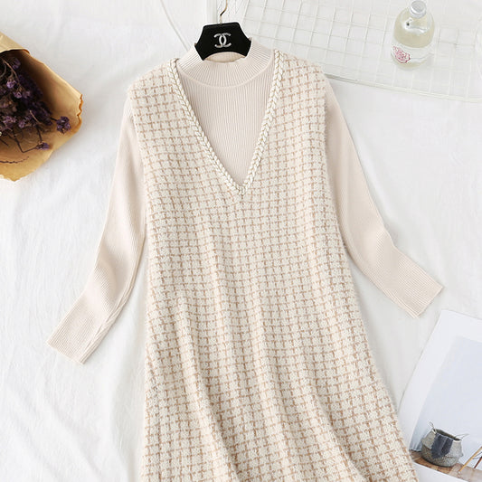 New knitted bottomed shirt vest skirt two piece dress 4453
