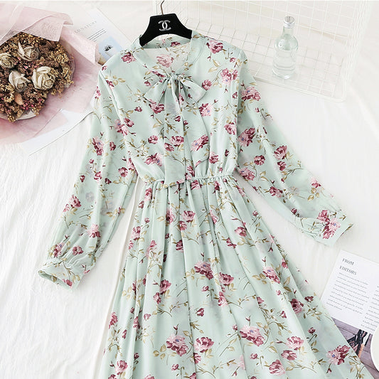 Long sleeved chiffon skirt + suspender knitted sweater vest suit 4448