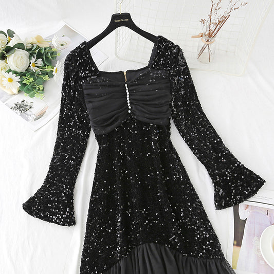 Square neck mesh fairy fishtail Sequin bottomed skirt 4432