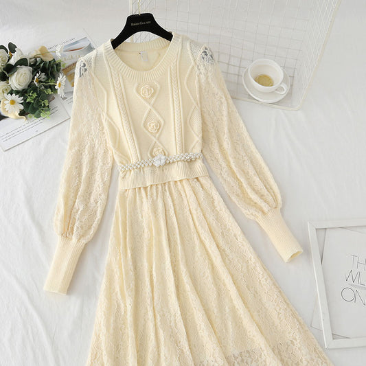 Sequin lace dress doll neck French gauze Fairy Dress 4433