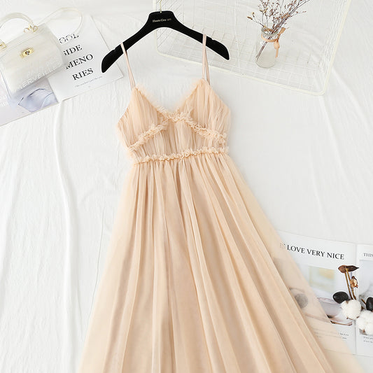 French white suspender dress mesh splicing sequins 4412