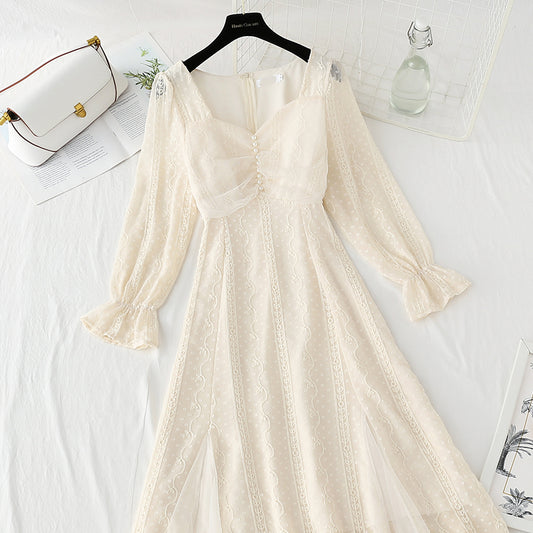 French long dress square neck bubble sleeve fairy skirt 4419