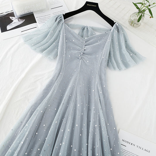 Gentle wind fairy Sequin gauze skirt is slim at the waist 4397