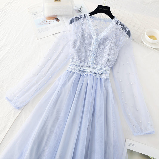 New mesh lace stitched skirt fairy Sen suit long skirt 4401