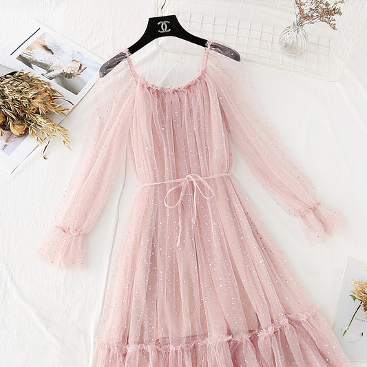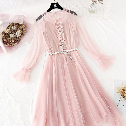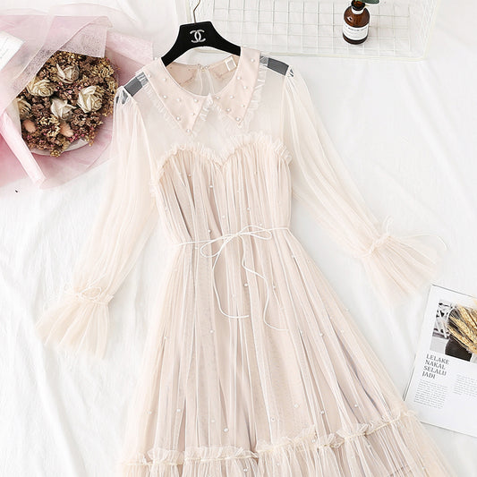 Mesh dress gentle super fairy loose doll A-line skirt 4372