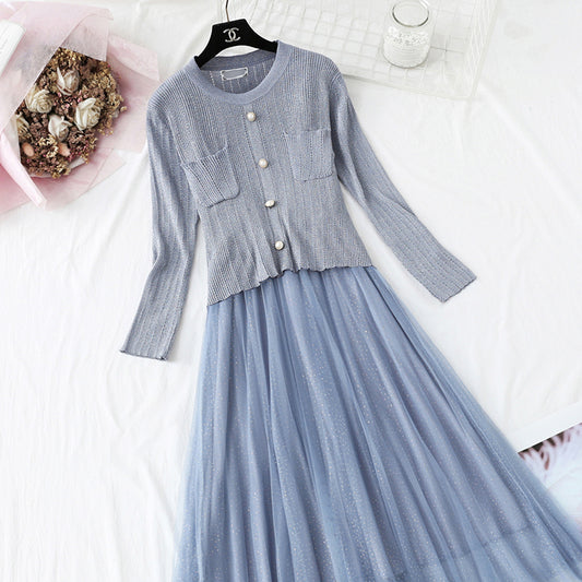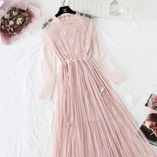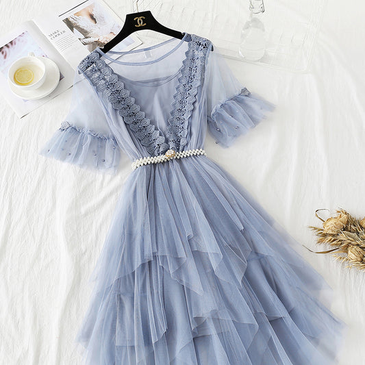 Fairy mesh sling bottomed long skirt two-piece set super xiansen series 4362