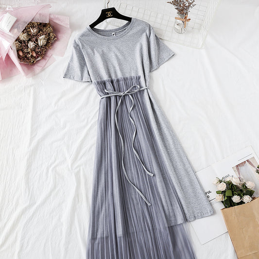 Pleated mesh irregular personality T-shirt skirt 4352