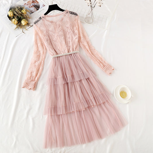 Minority lace mesh long skirt, celebrity temperament 4350