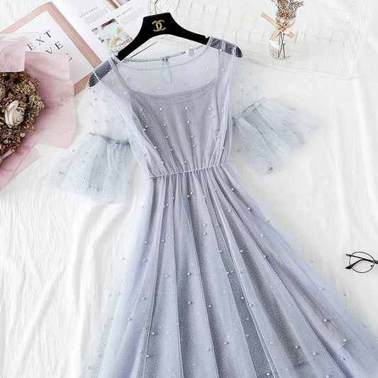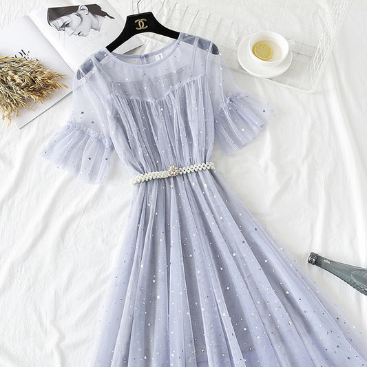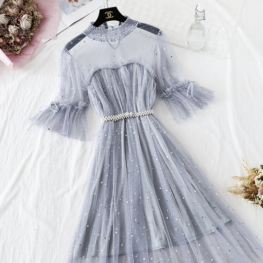 French minority Sequin gauze long skirt is super xiansen sweet 4328