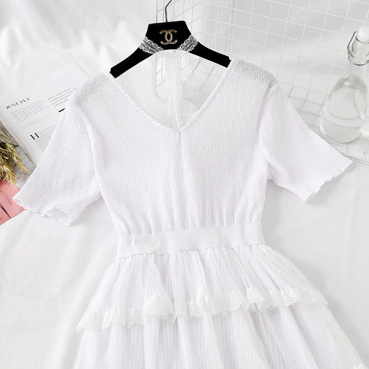 Fairy super xiansen sweet French high waist layered cake skirt 4337