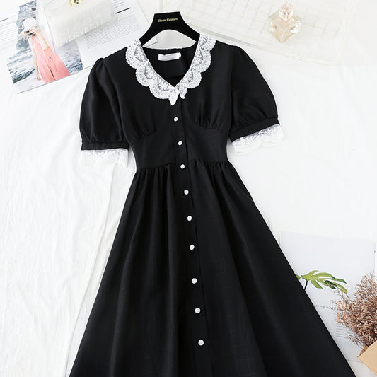Super fairy bubble sleeve gentle wind high waist thin temperament dress 4209