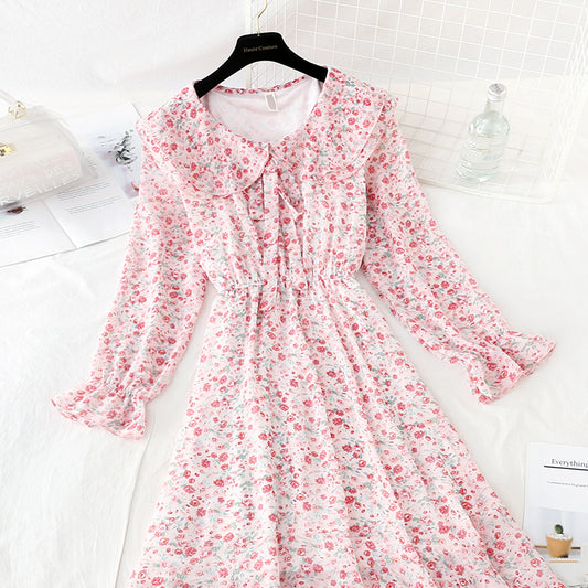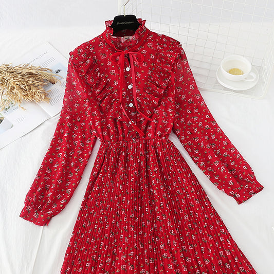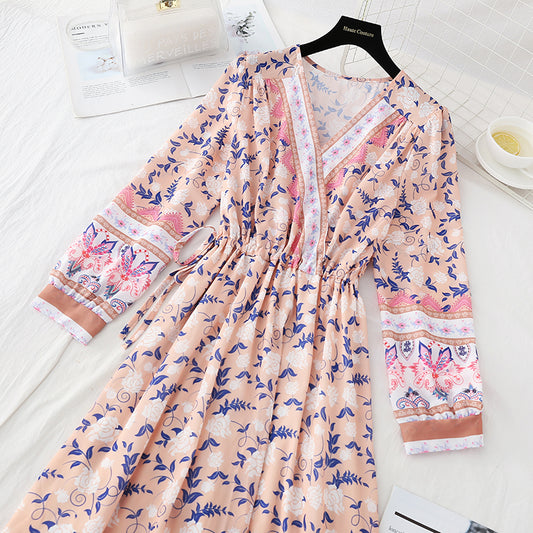 The waist is slim, retro, gentle, wind and snow spinning long skirt 3847