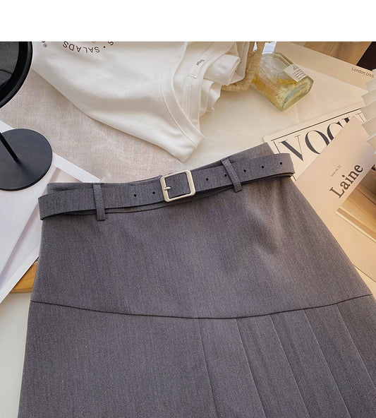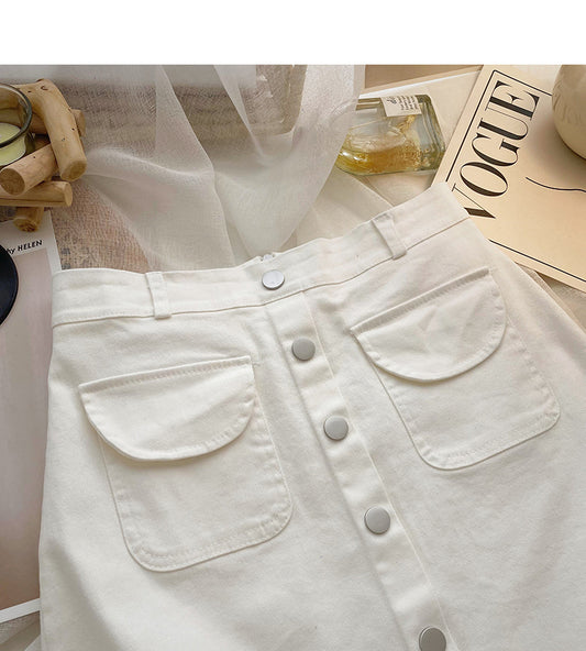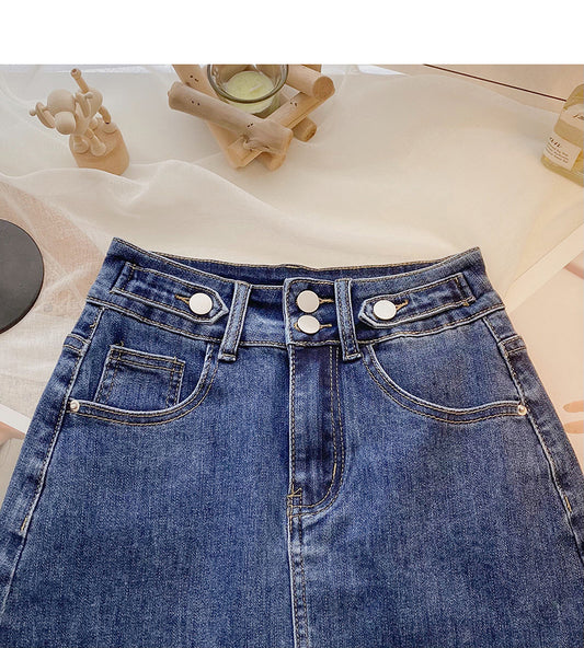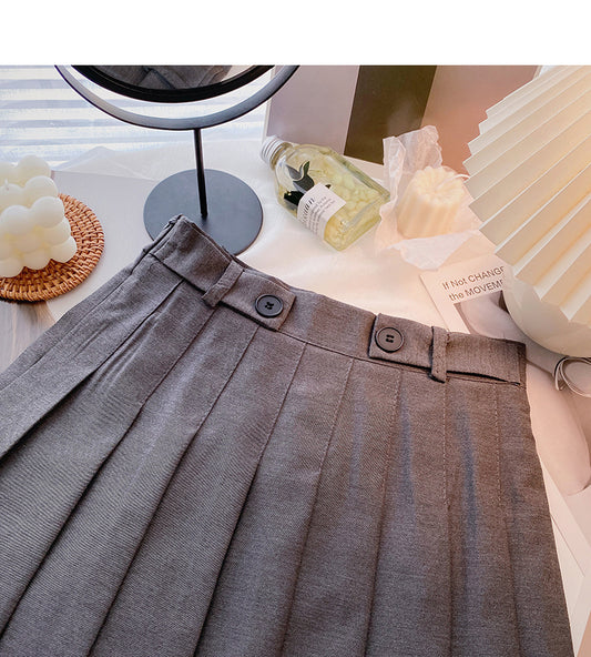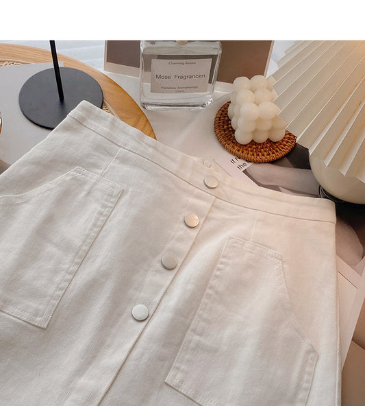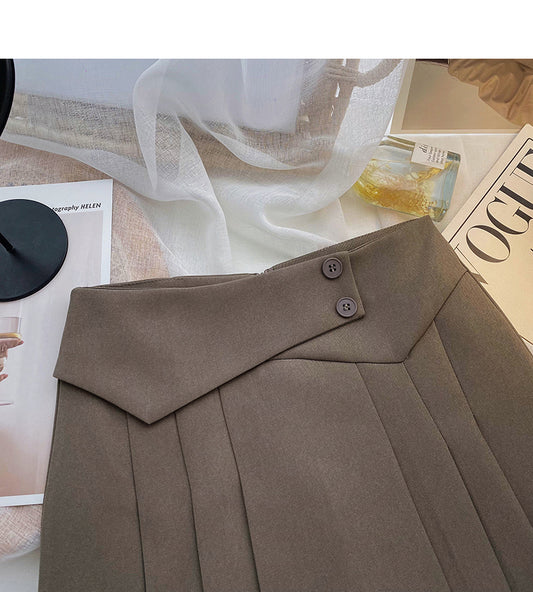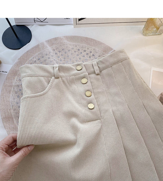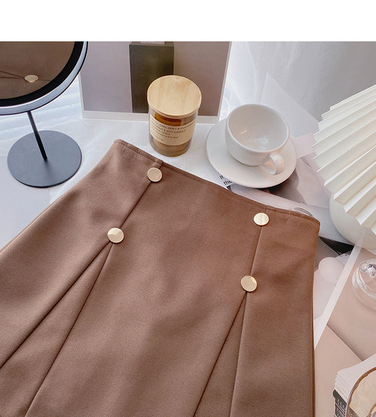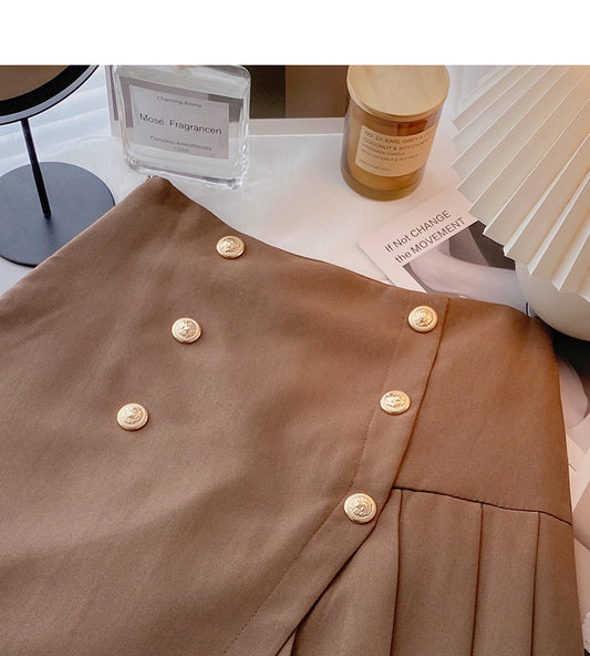 Niche design double row buttons show thin crimp high waist skirt 5652