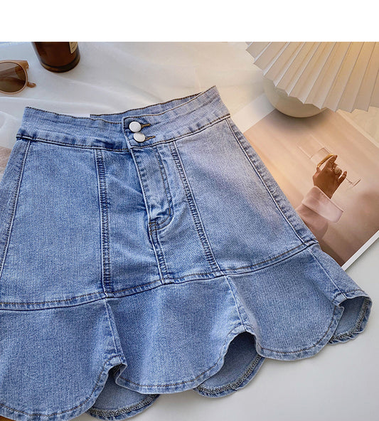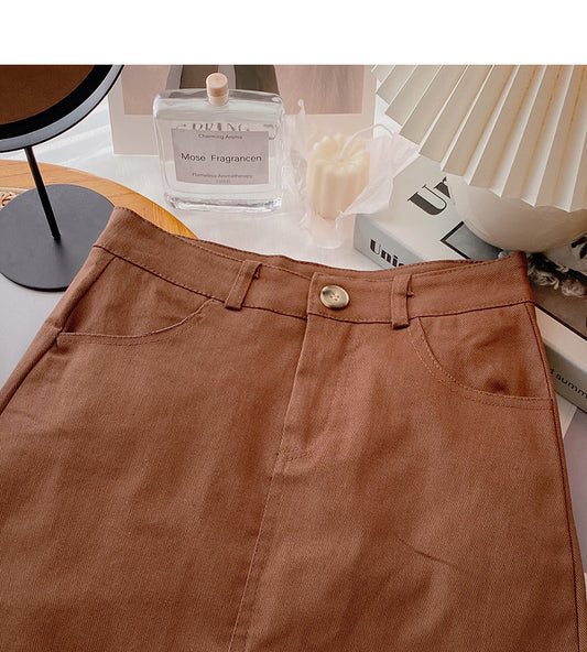Korean version of student aging design pure color high waist A-line skirt 5658