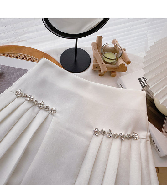 Korean diamond inlaid chain design foreign style high waist skirt 5656