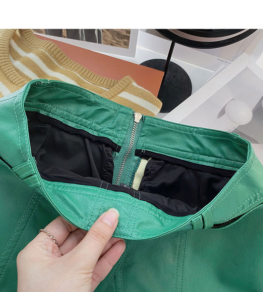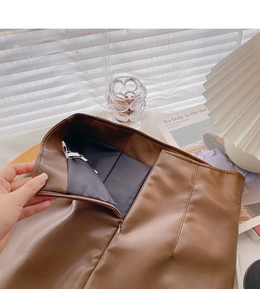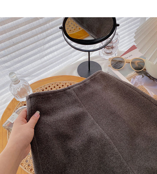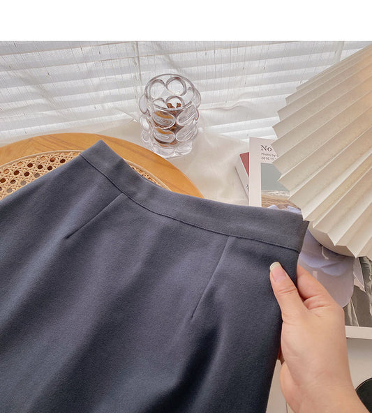 Korean casual solid color versatile simple slim high waist A-line skirt 5443