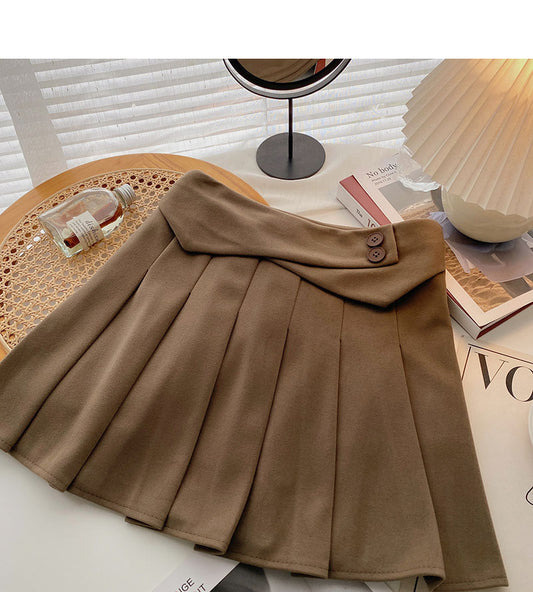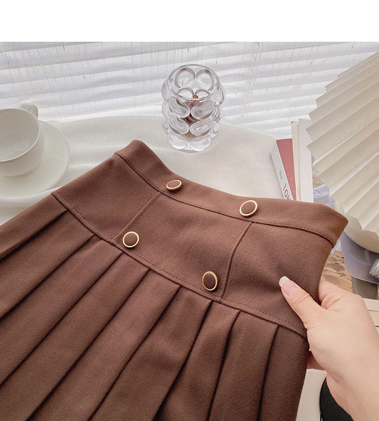 Three button high waist design, foreign style, age reducing pleated A-line skirt 5442