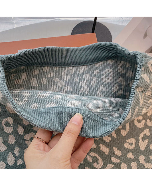 Hong Kong style leisure retro leopard print wrap hip high waist A-line skirt 5441