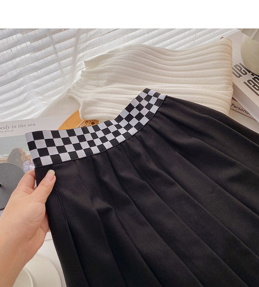Korean Vintage Plaid high waist thin A-line skirt 5450